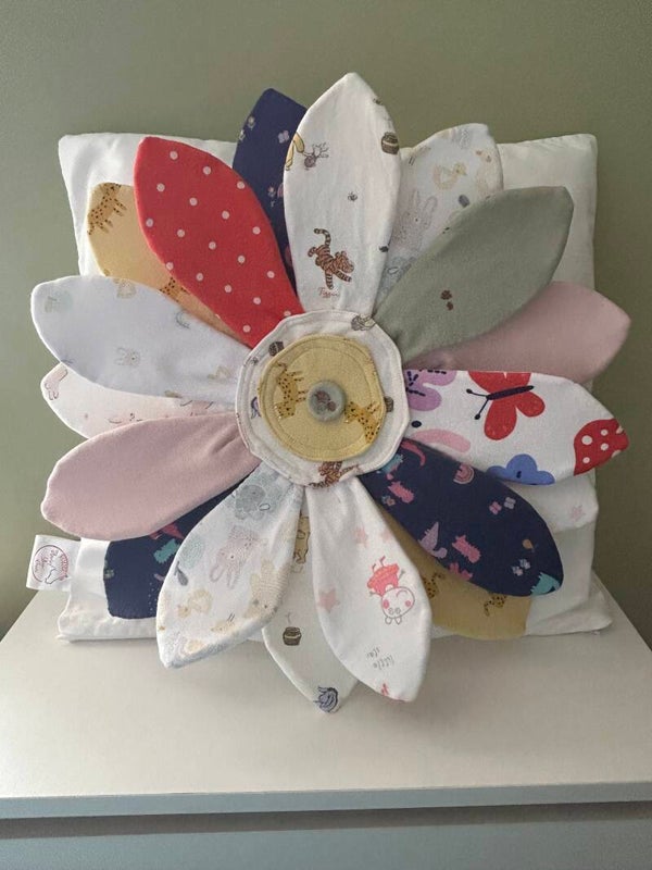 Handmade cushion made from loved ones clothes. This is a great way to remember a special time such has a child's first year, a wedding or first school uniform or even a loved one who is no longer with us.